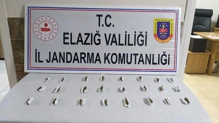 Elazığ'da jandarma tarafından yapılan çalışmada, 24 içimlik paket halinde esrar maddesi ele geçirilirken bir şüpheli gözaltına alındı.
