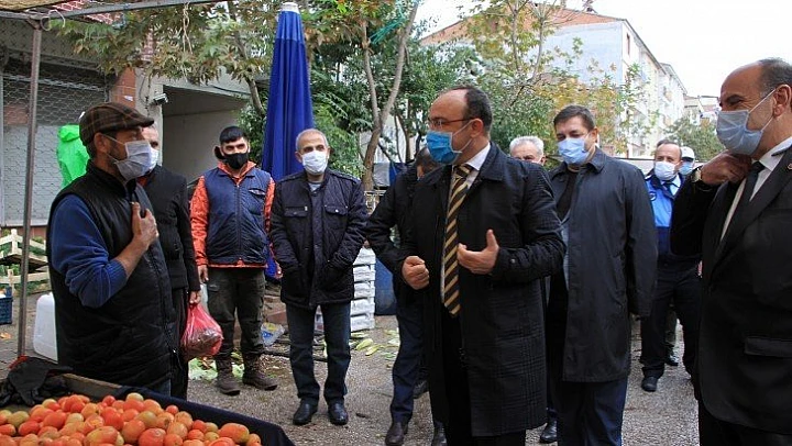 Covid-19 salgınının yeniden yükselişe geçtiğini belirten Vali Yırık vatandaşların alınan tedbirlere çok dikkat etmesi gerektiğini belirterek, “Salgının başladığı günden itibaren tüm dünyada etkisini göstermeye devam ediyor. Geldiğimiz bu noktada salgının zaman zaman pik yaptığını gördük. Bugünlerde salgının tüm dünyada olduğu gibi ülkemizde de nispi bir artış seyrettiğine şahit oluyoruz. Her ne kadar tedbirleri alıyoruz, almaya çalışıyoruz ve denetimler yapıyoruz desek de maalesef arzu ettiğimiz iyileştirmeyi henüz gerçekleştiremedik. Bunda etkili olan elbette ki denetimlerin eksikliği ya da zayıflığı değil muhtemelen tüm geneli etkileyen böyle bir sıkıntının, müşterek bir konunun her vatandaşımız tarafından aynı şekilde duyarlıkla takip edilemediği gerçeği ile ilintili olduğunu düşünüyorum. Bugün itibariyle özellikle caddeler, sokaklar, bulvarlar, pazar yerleri, vatandaşlarımızın sosyal hayatının yoğunlaştığı alanlarda vatandaşlarımıza tekrar onun üzerine yapmış olduğumuz gibi bugün de bilinçlendirme ve rehberlik çalışması yapıyoruz” dedi.