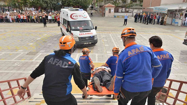 İl Milli Eğitim Müdür Yardımcısı Mehmet Zeki Ulufer, 'Dünya Afet Risklerinin Azaltılması etkinlikleri çerçevesinde Elazığ İl Milli Eğitim Müdürlüğü olarak tüm okullarda bu tatbikatımız devam etmektedir. İl Milli Eğitim Müdürlüğü AKUB , Elazığ Belediyesi İtfaiye Müdürlüğü, UMKE ve AFAD olmak üzere tüm paydaşlar burada çocuklarımızın afet ile ilgili farkındalık bilincini geliştirmek üzere yapılan bu çalışmalardan dolayı emeği geçen bütün yöneticilerimize, öğretmenlerimize teşekkür ediyorum. Türkiye ve ilimiz olmak üzere afet bölgesindeyiz. Bugün de 5.8 şiddetinde deprem olacakmış gibi tatbikat yapıldı. Bu tatbikatta öğrencilerimiz deprem anında davranışlarının ne olması gerektiği, aynı zamanda deprem hemen sonrasında tahliyenin nasıl olması gerektiği, içerideki yaralı ve hastaların kurtarılması ile ilgili her türlü bilgiler verildi' dedi.