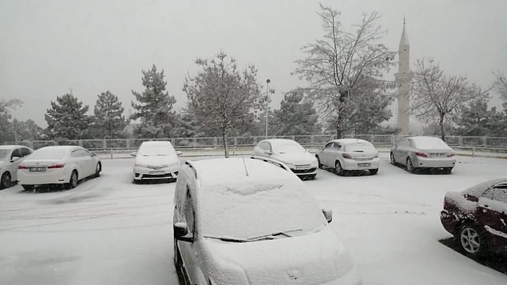 Depremin yaralarının sarılmaya çalışıldığı Elazığ'da sabah erken saatlerde başlayan yoğun kar yağışı kısa sürede kenti beyaza bürüdü.