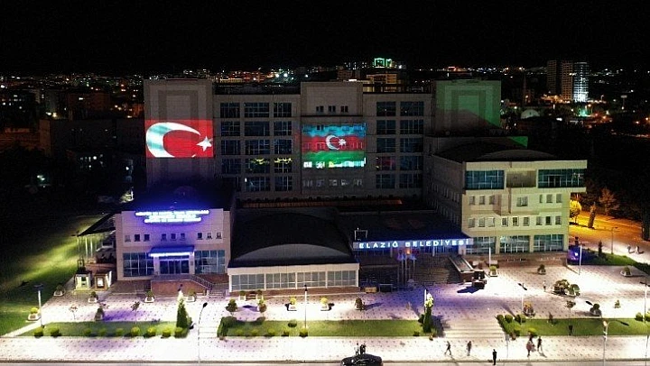 Türkiye'nin dört bir yanından Azerbaycan'a destek gelmeye devam ederken, Elazığ'da da belediye binasına Türkiye ve Azerbaycan bayrakları yansıtılarak kardeşlik mesajı verildi.
