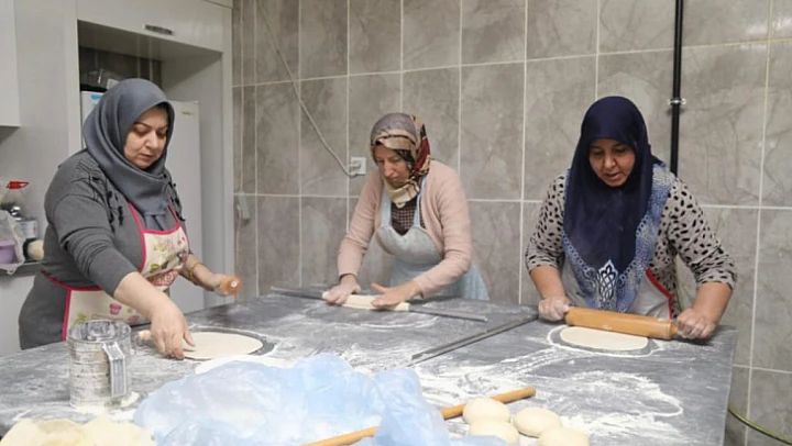 Hanımların pişirdikleri ekmek, poğaça, patila, kek ve börekler Elazığ merkezde konaklayan depremzedelere ulaştırılıyor.