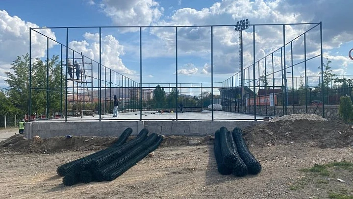 Elazığ Şehit Muammer Faruk Salgar Gençlik Merkezi alanı içerisinde akrilik zeminli tenis kortu ve basketbol sahası inşası devam ediyor.