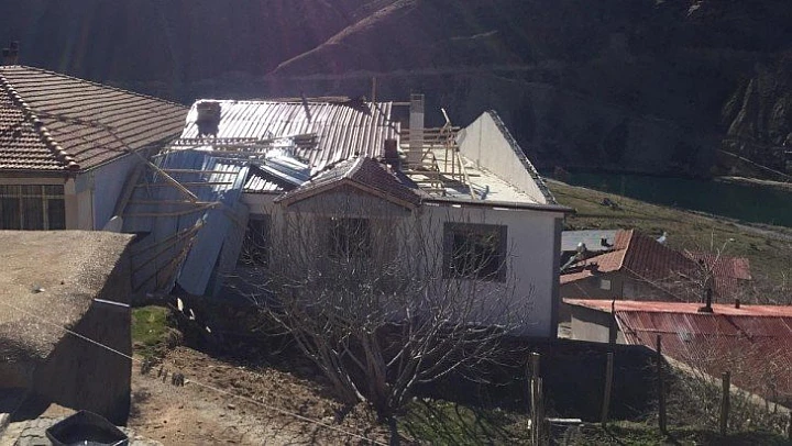 Elazığ'ın Keban ve Ağın ilçelerinde fırtına nedeniyle bazı evlerin çatıları uçtu.