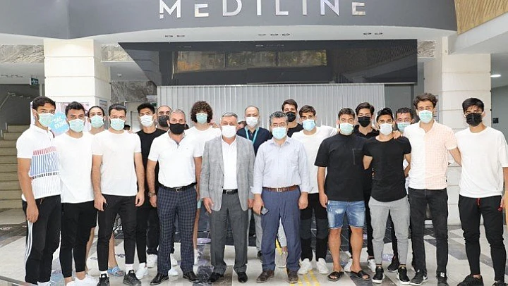 TFF 3. Lig 1. Grup'ta mücadele eden Elazığspor'un teknik heyet ve oyuncuları, AK Parti Elazığ İl Başkanı Şerafettin Yıldırım'ın girişimleriyle Elazığ Mediline Hastanesi'nde sağlık kontrolünden geçti. Sağlık kontrollerinin ücretsiz yapıldığını belirten AK Parti Elazığ İl Başkanı Şerafettin Yıldırım, hastane yöneticilerine katkılarından ötürü teşekkür etti.