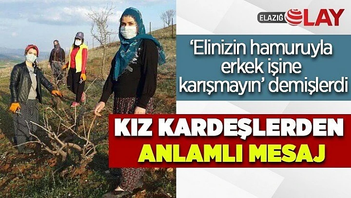 Elazığ'da Tarım Orman İl Müdürlüğünün düzenlediği kurslarda eğitim alan 3 kız kardeş, yıllar sonra koronavirüs salgını nedeniyle sokağa çıkmayan babalarının bağ ve bahçe işlerini yaptılar.