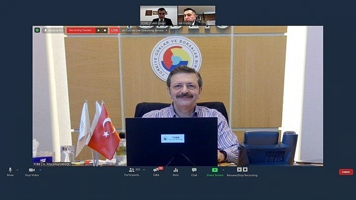 TOBB Başkanı M.Rifat Hisarcıklıoğlu, telekonferansla katıldığı programdaki konuşmasında, geçen ay gerçekleştirilen webinarın büyük ilgi gördüğünü ve geniş katılım sağlandığını söyledi.