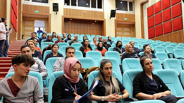 Fırat Üniversitesi Hastanesi çalışanlarına yönelik Elazığ Aile ve Sosyal Hizmetler İl Müdürlüğü tarafından 'Kadına Yönelik Şiddetle Mücadele' konulu eğitim verildi.