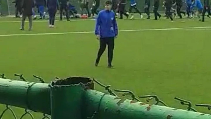 Kavga anı tribünde yer alan bir taraftarın cep telefonu kamerasıyla kaydedildi.