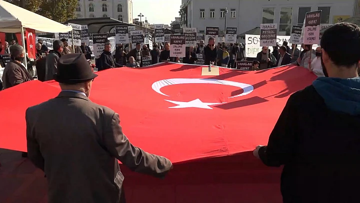 Ayrıca protestoya katılanlar tarafından dev Türk Bayrağı açılarak İsrail'in Gazze'ye yönelik saldırıları kınandı.