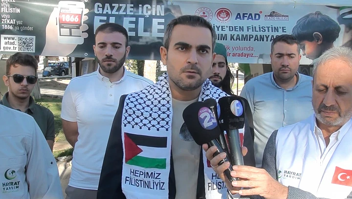 Gazze Direniş Platformu Dönem Sözcüsü Muhammed Sacit Ataş: 'Bu çalışmada yine Siz kıymetli Elazığ halkımızdan nakdi bağış ve yardım talebinde bulunarak Gazzeli kardeşlerimizin yarasına merhem olmaya çalışacağız. 2 yıla yakın bir süredir Gazze ve Direniş Platformu olarak 60 milyona yakın rakamı Gazze sınırları içerisine ulaştırmayı Elhamdülillah Başardık. Rabbimizden ricamız odur ki niyazımız odur ki kardeşlerimizin Sağ Salim Gazze kıyılarına ulaşarak taşıdıkları yardımları ulaştırabilmeleri. Sumud filosu ulaşsın veya ulaşmasın bizler bu mücadeleye devam edeceğimizi ikinci Sumud filosunun 3 Sumud filosunun da İnşallah devam etmesi için kardeşlerimize buradan haykırıyoruz. Bizler Türkiye ve Elazığ halkı olarak onların yanındayız ve her zaman yanlarında olmaya devam edeceğiz.' Dedi.