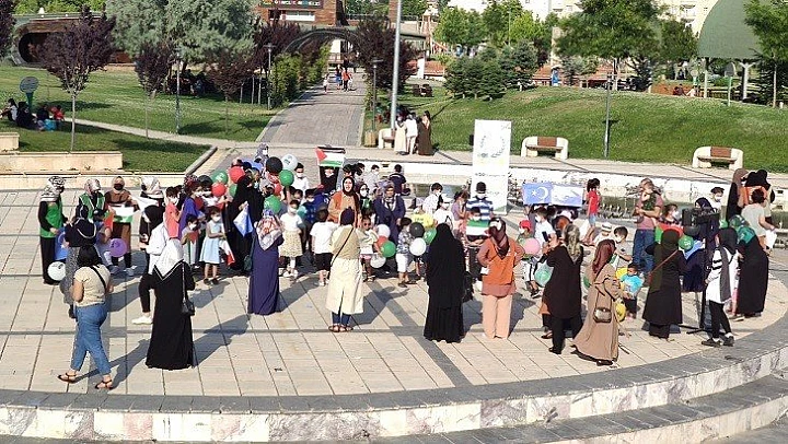 Bugün burada çocuklarımız ile birlikte Filistin ve Doğu Türkistan'ın özgürlük mücadelesi için bu ülkelerimizin bayraklarının rengi taşıyan balonlarımızı gökyüzüne uçuracağız. Zulüm ve işgal bitinceye, Mescid-i Aksa özgür oluncaya dek mücadeleye devam diyeceğiz” dedi.