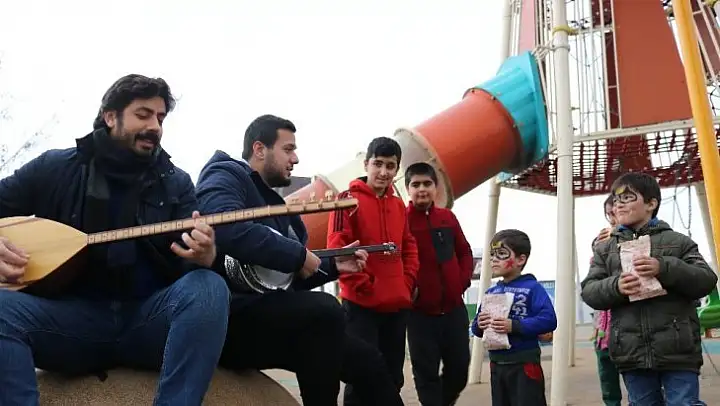 Elazığ'da deprem nedeniyle bir çok evin hasar görmesi sonrası oluşturulan çadır kentlerde yaşam sürüyor. Ülkenin dört bir yandan maddi ve manevi destekler gelirken, bir destek çalışması da Kovancılar İsmet Paşa Ortaokulunda öğretmen olan Bünyamin Ertekin ve Diyarbakır Kayapınar Şehit Abdıuvahap Çokur Meslek Lisesinde Elektronik Öğretmeni olan ağabeyi Yusuf Ertekin'den geldi. Ağabey, kardeş saz ve cümbüş eşliğinde çocuklar için kurulan oyun otobüsünde çocukları eğlendirdiler.