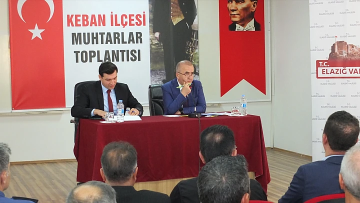 Keban İlçe Milli Eğitim Müdürlüğü Hacı Fevzi Efendi Konferans Salonunda, Elazığ Valisi Numan Hatipoğlu başkanlığında, Keban Kaymakamı Furkan Atalık, kurum müdürleri, ilçe ve köy muhtarlarının katılımıyla Muhtarlar Toplantısı gerçekleştirildi.
