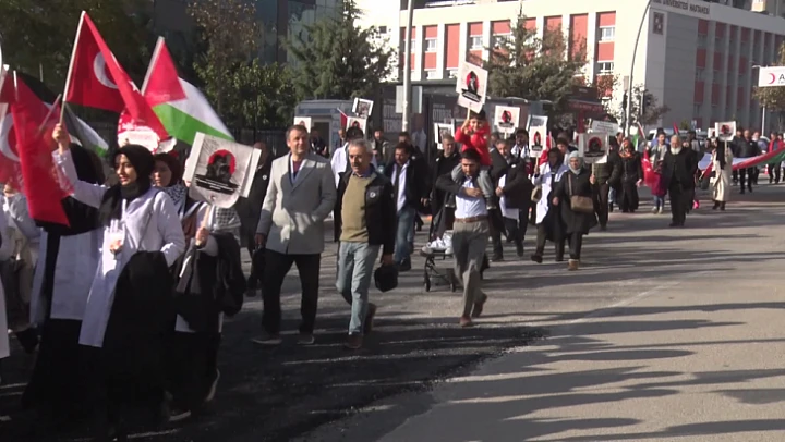 Elazığ'da hekimler İsrail'i kınayarak Fırat Üniversitesi Hastanesi önünden Cumhuriyet Meydanı'na kadar 'Sessiz Yürüyüş' yaptılar.