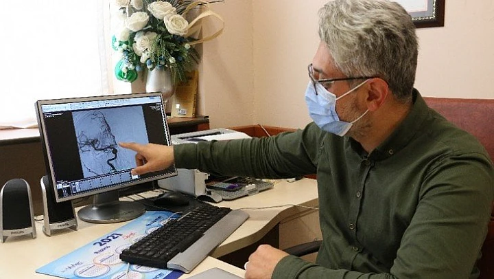 İnme hastalığının yaşla birlikte sıklığı artan bir hastalık olduğuna dikkat çeken Doç. Dr. Aytaç, “Dünyada her 6 saniyede bir kişi inme geçiriyor ve 60 dakikada bir kişi de inmeye bağlı ölüm görüyoruz. 70 yaş civarında binde 20 sıklıkla görülüyor. 45 yaş civarına kadar bu hastalığı görebiliyoruz. Yaş arttıkça sıklığı artıyor ama 20'li yaşlarda da görebiliyoruz. İnme hastalarına erken müdahale ile hastaların felç kalmasına veya ölmelerini engellemeye çalışıyoruz. Merkezimiz bünyesinde erken dönemde damar tıkanıklığıyla gelen hastalara hızlıca müdahale ediyoruz, hastayı hemen anjiyo ünitesine alıyoruz. Tıkalı beyin damarını tespit ettikten sonra o damarın açılmasını sağlıyoruz. Böylelikle hastaların felç kalmasını engelliyoruz ki inme, dünyada sakat bırakma ve engellilik konusunda birinci sırada yer alan en önemli hastalıklardan bir tanesidir ve dünyadaki ikinci en sık ölüm nedeni inmeye bağlı ölümler oluşturuyor. Merkezimiz de yaklaşık 2017 yılından beri bu bölgedeki hastalara hizmet vermekte. Bugüne kadar yaklaşık 500 anjiyo işlemi gerçekleştirdik ve yüzlerce hastanın hayatına dokunabilme imkanımız oldu. Sadece erken dönemde inme hastaları değil aynı zamanda inmeye neden olan şah damar tıkanıklığı olan hastalara da stent takarak hastaların uzun dönemli inme geçirmelerini veya daha ağır bir inme geçirmesini engelliyoruz” dedi.