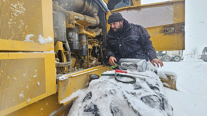 Karla mücadelede kullanılan greyder, kepçe ve diğer iş makineleri, sahada tespit edilen arızalara anında müdahale edilerek yeniden hizmete hazır hale getiriliyor. Ekipler, zorlu hava koşullarına rağmen çalışmalarını aralıksız sürdürerek yol açma ve ulaşımın sürekliliğini sağlama konusunda aktif rol üstleniyor.