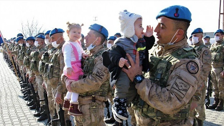 Eşiyle vedalaşan Halime Özdayı ise, “3 aylık bebeğimizle oğullarımızla bir an önce sağ salim gidip gelmesini temenni ediyoruz. İnşallah hiç birinin burnu kanamasın. Karmaşık bir duygu. Bir tarafta gurur diğer tarafta hüzün var. İkisi bir arada. Büyük oğlum 9, küçük oğlum 6 yaşında. Onlarında ilk ayrılışları. Her zaman onlarla gurur duyuyoruz. Dualarımız onlarla” diye kaydetti.