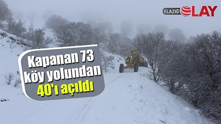 Elazığ'da dün etkili olan kar yağışı nedeniyle kapanan 73 köy yolunun 40'ı açıldı, 33'ünde ise çalışmanın sürdüğü bildirildi.