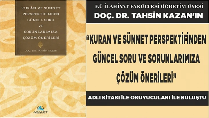 Hadis, Arap dili ve Edebiyatı alanında çalışmalar yapmakta olan İlahiyat Fakültesi Öğretim Üyesi Doç. Dr. Tahsin Kazan 'Hanefi Alimlere Göre Hadis Usulü' adlı eserinden sonra 'Kuran ve Sünnet Perspektifinden Güncel Soru ve Sorunlarımıza Çözüm Önerileri' adlı eseri Asalet Yayınları tarafından okuyucularının beğenisine sunuldu.