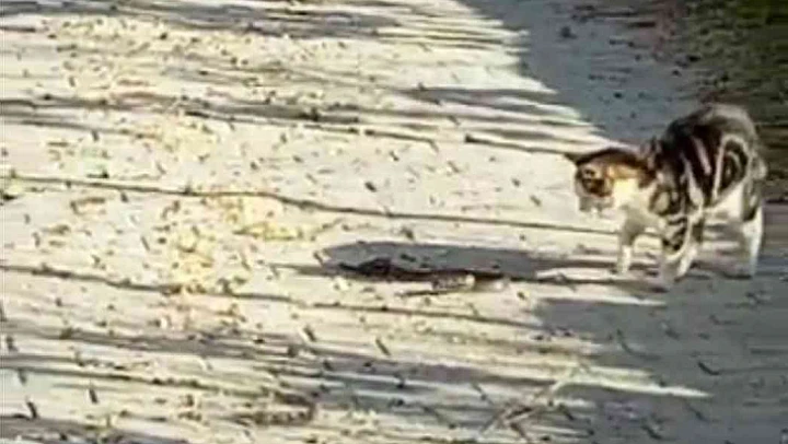 Pirinççi köyünde yolda yılanla karşılaşan iki kedi, bir süre yılanla mücadele etti. Kedilerin saldırılarına karşı koymaya çalışan yılanın kaçma denemeleri sonuçsuz kaldı. Yaklaşık 10 dakika süren kovalamacada yılan kedilerin yemi oldu. O ilginç anlar ise bir vatandaşın cep telefonu kamerasına yansıdı.