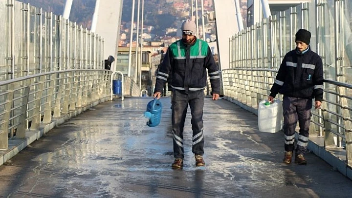 Kış aylarına girilmesi ve yağışların artması ile gece saatlerinde üst geçitlerde buzlanmalar meydana gelebilecek buzlanmalara karşı Park Bahçe ve Yeşil Alanlar Daire Başkanlığı ekipleri, üst geçitlerde asansör temizliğinin yanı sıra buzlanmaların önlenmesi içinde çalışıyor. Ekipler vatandaşların üst geçitlerde yürüdükleri zemine sıvı solisyon döküyor. Dökülen madde ile zemindeki buzların çözülmesi sağlanırken 24 saat boyunca da buzlanmaların oluşmasının önüne geçiliyor.