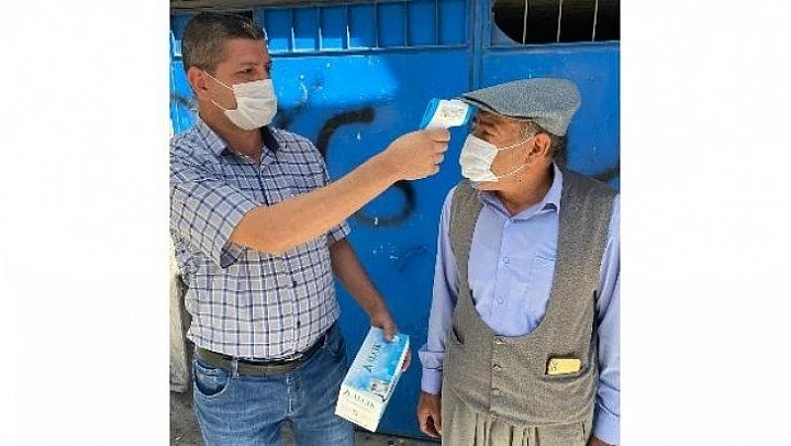 Elazığ'da bir köyde muhtar, hemen hemen her gün kapı kapı gezip vatandaşların ateşlerini ölçüyor ve ihtiyacı olanlara maske dağıtıyor.