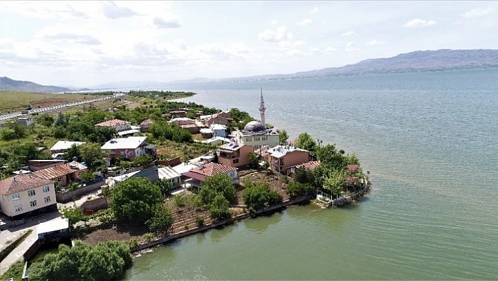 Elazığ'da Keban Baraj Gölü'nün havzasında yer alan Murat Nehri'ne sıfır konumda bulunan Aşağı içme köyü suların yükselmesiyle eşsiz manzaraya büründü.