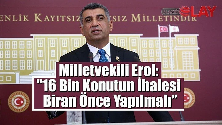 CHP Elazığ Milletvekili Gürsel Erol, 2020 yılı sonuna kadar 20 bin 417 adet konutun teslim edilecek olmasının iyi bir haber olduğunu, ihalesi yapılmayan 16 bin konut için hızlı davranılması gerektiğini söyledi.