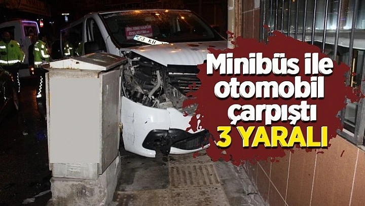 Elazığ'da minibüs ile otomobil çarpıştı, 3 kişi yaralandı.