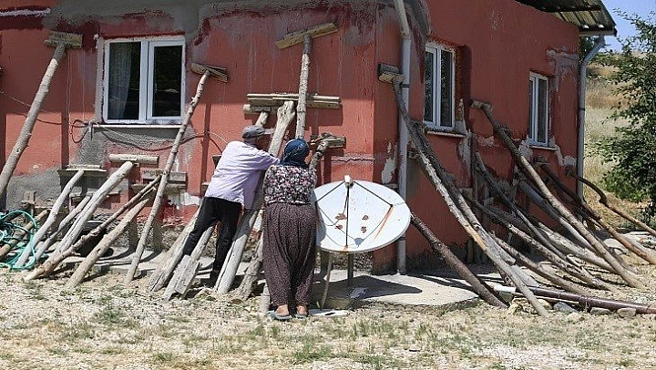 Elazığ'da bir vatandaş, depremde hasar gören evinin yıkılmasını önlemek amacıyla ilginç bir çare buldu.