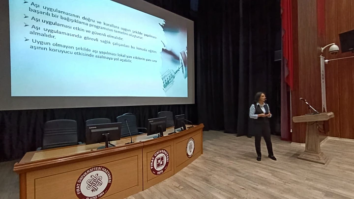 Fırat Üniversitesi Hastanesi 6. Kat Konferans Salonu'nda gerçekleştirilen 'Aşı ve Aşı Transferi' konulu eğitime çok sayıda sağlık çalışanı katıldı.