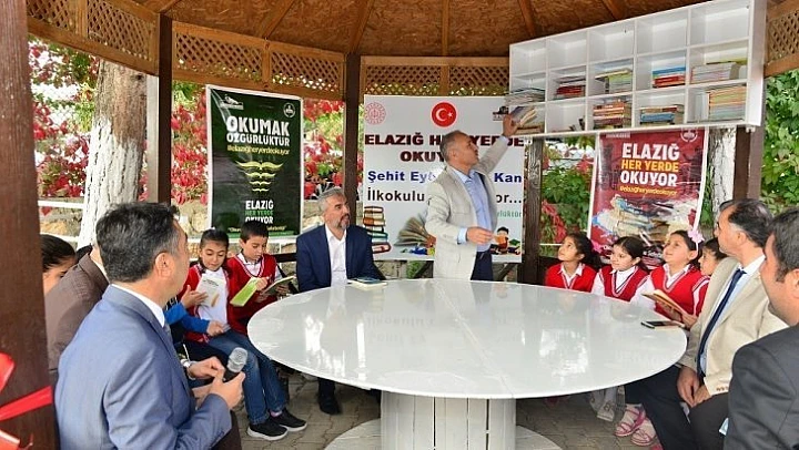Elazığ'da Şehit Eyüp Emre Kan İlkokulu'nun bahçesine okuma alanı ve içinde ise geri dönüşüm amaçlı atık köşesi kuruldu.