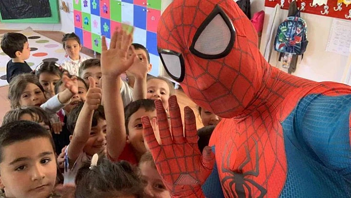Örümcek adam minik öğrencileri eğlendirdi