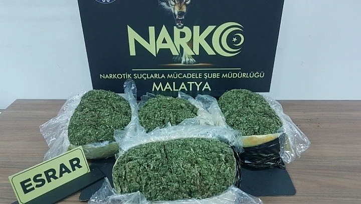 Edinilen bilgiye göre, Malatya Emniyet Müdürlüğü Narkotik Suçlarla Mücadele Şube Müdürlüğü görevlilerince Elazığ yolu üzerinde bulunan uygulama noktasında arama gerçekleştirildi. Yapılan çalışmalar sonucu bir otobüs firmasında yolculuk yapan K.T. isimli şahsın valizinde yapılan aramada 4 kilo 40 gram kubar esrar maddesi ele geçirildi. Gözaltına alınan şüpheli hakkında TCK 188. maddesi kapsamında yasal işlem yapıldı.