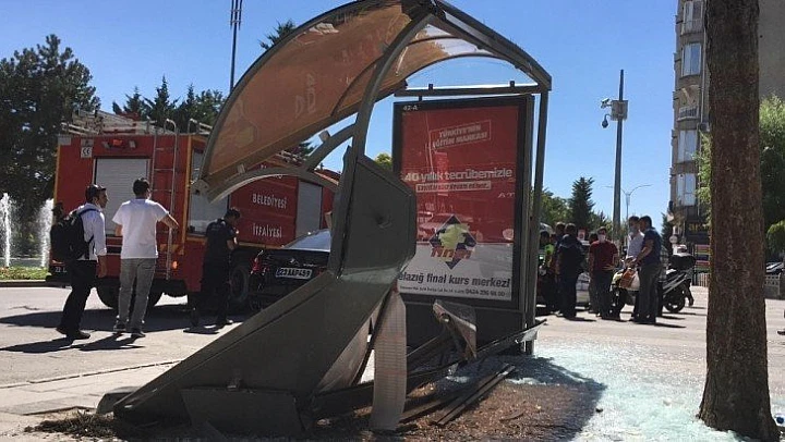 Elazığ'da sürücüsünün direksiyon hakimiyetini kaybettiği otomobil, otobüs durağına girdi. Yarısı yıkılan durakta kimsenin olmaması faciayı önledi.