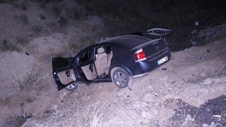 Elazığ'da aydınlatma direğine çarptıktan sonra şarampole yuvarlanan otomobilde bulunan 2 kişi yaralandı.