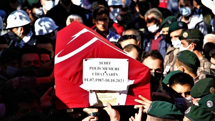 Fırat Kalkanı Harekatı Bölgesinde zırhlı araca terör örgütü mensupları tarafından düzenlenen füzeli saldırı sonucunda Özel Harekat Polisi Cihat Şahin ve Fatih Doğan şehit düşmüş, 2 poliste yaralanmıştı. Bugün memleketi Elazığ'a getirilen şehit 2 çocuk babası 34 yaşındaki Cihat Şahin için Mevlana Caminde cenaze töreni düzenlendi. Törene, İçişleri Bakanı Süleyman Soylu, Adalet Bakan Yardımcısı Yakup Moğul, Emniyet Genel Müdürü Mehmet Aktaş, Elazığ Valisi Ömer Toraman, AK Parti Elazığ Milletvekili Zülfü Demirbağ, Belediye Başkanı Şahin Şerifoğulları, FÜ Rektörü Prof. Dr. Fahrettin Göktaş, Özel Harekat Başkanı Selami Türker, İl Emniyet Müdürü Celal Sel, 8. Kolordu Komutanı Tuğgeneral Sadettin Alp Ergin, yakınları ve ailesi katıldı.