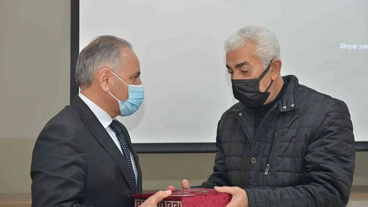 Programda Kur'an-ı Kerim tilavetinin ardından Milli Eğitim Müdürü Feyzi Gürtürk, Şehit Faruk Barut'un babasına Kur'an-ı Kerim ve Türk bayrağı armağan etti.