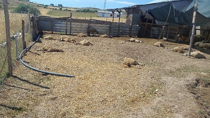 Elazığ Merkez Hicret Mahallesi Pınarbaşı Sokakta bulunan Nihat Gülbasan'a ait ağıla giren aç kurt 32 koyunu boğarak telef etti.