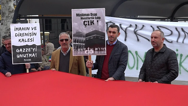 15 Temmuz Demokrasi Meydanı'nda gerçekleştirilen eylemde, katılımcılar Gazze'de yaşananları ve İsrail'i lanetleyen dövizler taşıdı. Eylemde, Kur'an-ı Kerim tilaveti okunup dualar edilirken, katılımcılar Filistin halkıyla dayanışma mesajları verdi.