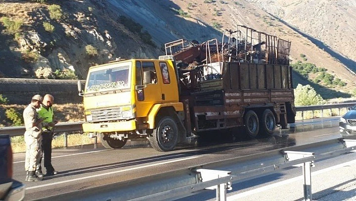 Erzincan'da seyir halindeki kamyonun kasasında bulunan hurda malzemeler yandı. Yangın nedeniyle Erzincan-Erzurum kara yolu bir süre ulaşıma kapandı.