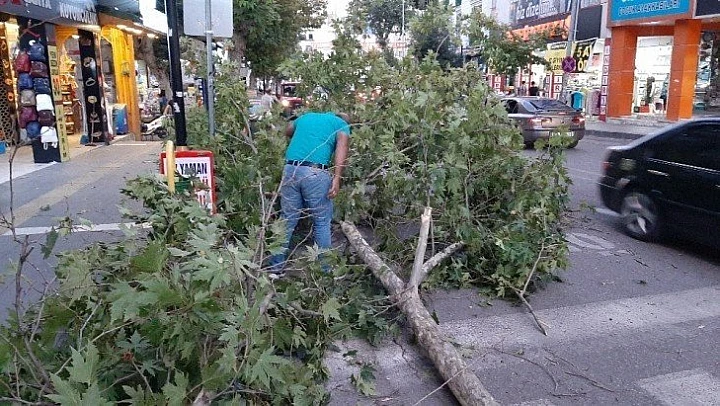 Şiddetli rüzgar aydınlatma lambası ve ağaç dallarını kopardı