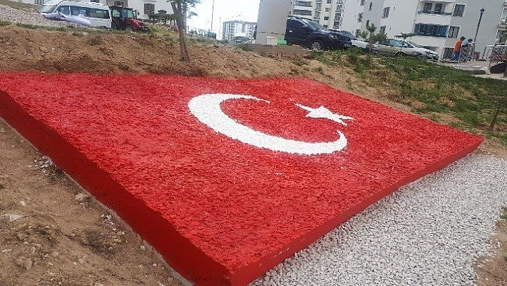 Sitenin içini ağaç ve çiçeklerle süsleyen Demirelli, sitenin yüksek bir bölümünde ise Türk Bayrağı yapmaya karar verdi.