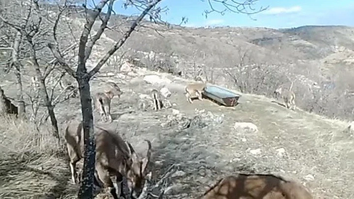 Elazığ'da dağ keçilerinin su içmeleri için yerleştirilen sıvatlardan, ihtiyaçlarını giderme ve karınlarını doyurmaları fotokapanla görüntülendi.