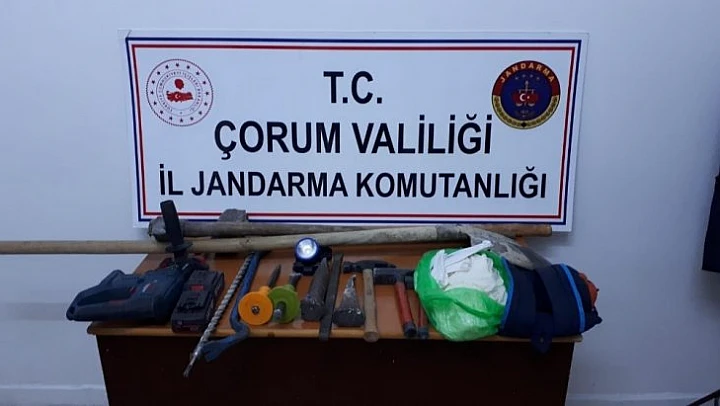 Çorum'un Sungurlu ilçesi'ne bağlı Kuşçalı köyünde, kaçak kazı yapan 2 kişi jandarma tarafından düzenlenen operasyon sonucunda suçüstü yakalandı.