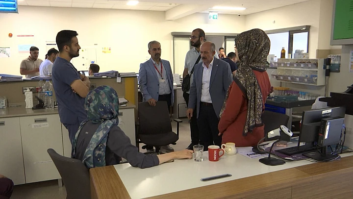 Ziyarette, Fethi Sekin Şehir Hastanesi çalışanlarıyla birebir gerçekleştirilen sohbetlerde sorunlar ve talepler dinlendi.
