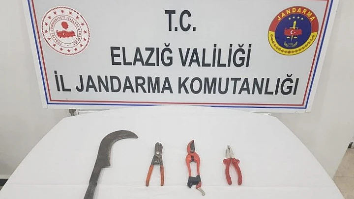Elazığ'da jandarma ekiplerinin yaptığı çalışmada 20 bin TL değerindeki telefon kablolarını çalana 3 şüpheli yakalandı. Araçta yapılan aramada ise başka yerden alındığını tahmin edilen kablolar ile uyuşturucu madde kullanımını sağlayan düzenek ele geçirildi.