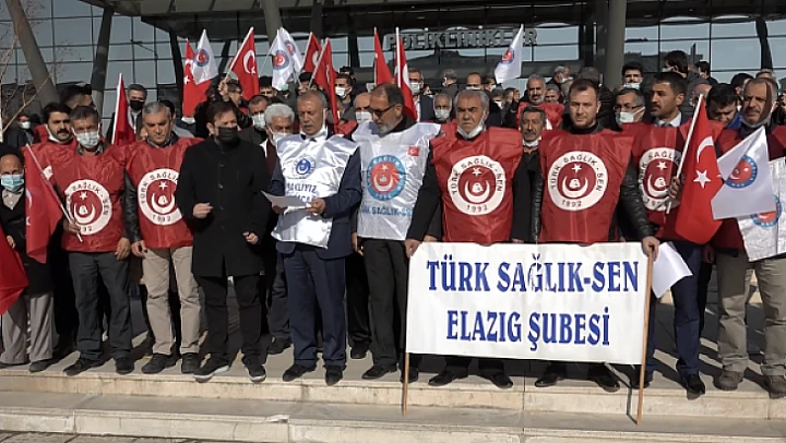 Elazığ'da Türk Sağlık Sen üyeleri, Elazığ Fethi Sekin Şehir Hastanesi'nde iş bırakma eylemi düzenledi.