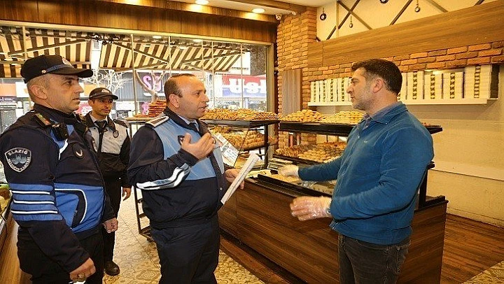 Elazığ Belediyesi Zabıta ekipleri kentte faaliyet gösteren pastane, tatlıcı ve unlu mamul üreticilerine korona virüs nedeniyle oturma alanlarının kapatıldığına dair tebliğde bulundu.